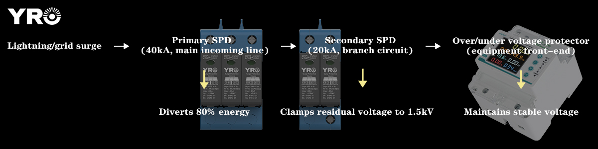 এ থেকে এটি দেখা যায় যে সার্জিং লাইটনিং প্রোটেকশন ডিভাইস এবং ওভারভোল্টেজ এবং আন্ডারভোল্টেজ সুরক্ষা ডিভাইসগুলি পরিপূরক: এসপিডি পাওয়ার গ্রিডে অবিচ্ছিন্ন ওভারভোল্টেজের সাথে মোকাবেলা করতে পারে না এবং এই সময়ে, বিদ্যুৎ সরবরাহ বন্ধ করার জন্য একটি ভোল্টেজ সুরক্ষা ডিভাইস প্রয়োজন। ভোল্টেজ প্রটেক্টরের ন্যানোসেকেন্ড-স্তরের বজ্রপাতের কোনও প্রতিক্রিয়া নেই এবং ক্ষণস্থায়ী সুরক্ষা সরবরাহের জন্য এসপিডি প্রয়োজন।